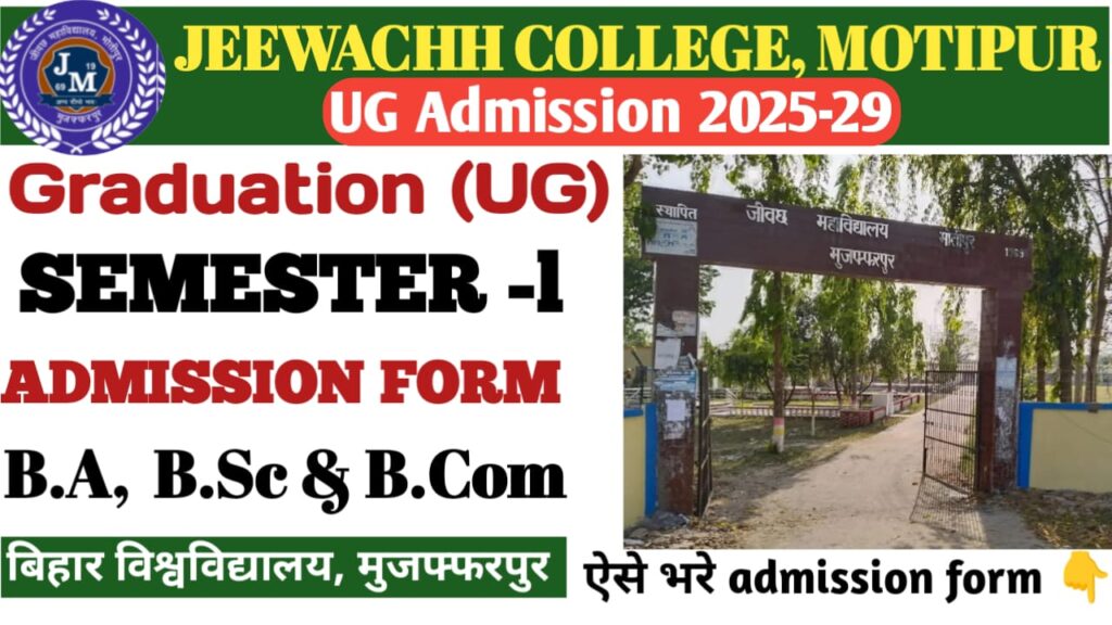 JEEWACHH COLLEGE UG SEMESTER -I ADMISSION : नमस्कार दोस्तों,इस लेख में हम आपको JEEWACHH COLLEGE UG SEMESTER -I ADMISSION 2025-29 से संबंधित जानकारी देंगे । यदि आप JEEWACHH COLLEGE  से ग्रेजुएशन के पढ़ाई करना चाहते हैं, तो आपके लिए एक बहुत बड़ी नोटिस आयी  है, कॉलेज के तरफ से। यदि आप JEEWACHH COLLEGE  2025-2029 वाला सेशन से संबंधित हैं, तो आपको SEMESTER -1 में आपके कॉलेज में ADMISSION करायी जा रही है । जो आप निधारित समय से पहले अपना SEMESTER -I में ADMISSION करवा लें। एडमिशन से संबंधित पूरी जानकारी इस लेख में बताई गई है, इसलिए आप इस लेख को ध्यानपुर्वक पढें, ताकि आपको एडमिशन के समय कोई समस्या न हो।